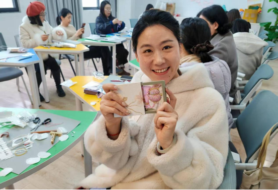传承匠心,非遗宋锦手作活动让老师们近距离感受到了传统文化的独特魅力。在专业老师的指导下,女教职工们亲手触摸千年宋锦的华美纹理,通过裁切、拼接、镶嵌,将一片片精美的锦缎制作成独一无二的挂饰。大家在感受一丝一线间蕴含的工匠精神的同时,也度过了一段静心养性的美好时光。